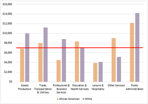 The two sectors with the most Certificate Graduates, Education & Health and Public Administration, had varied wage outcomes by race.